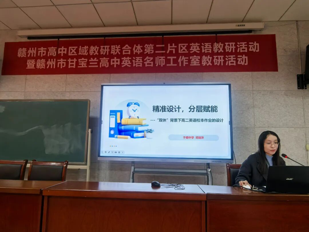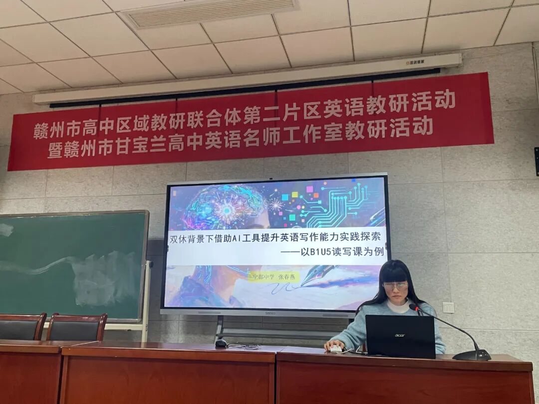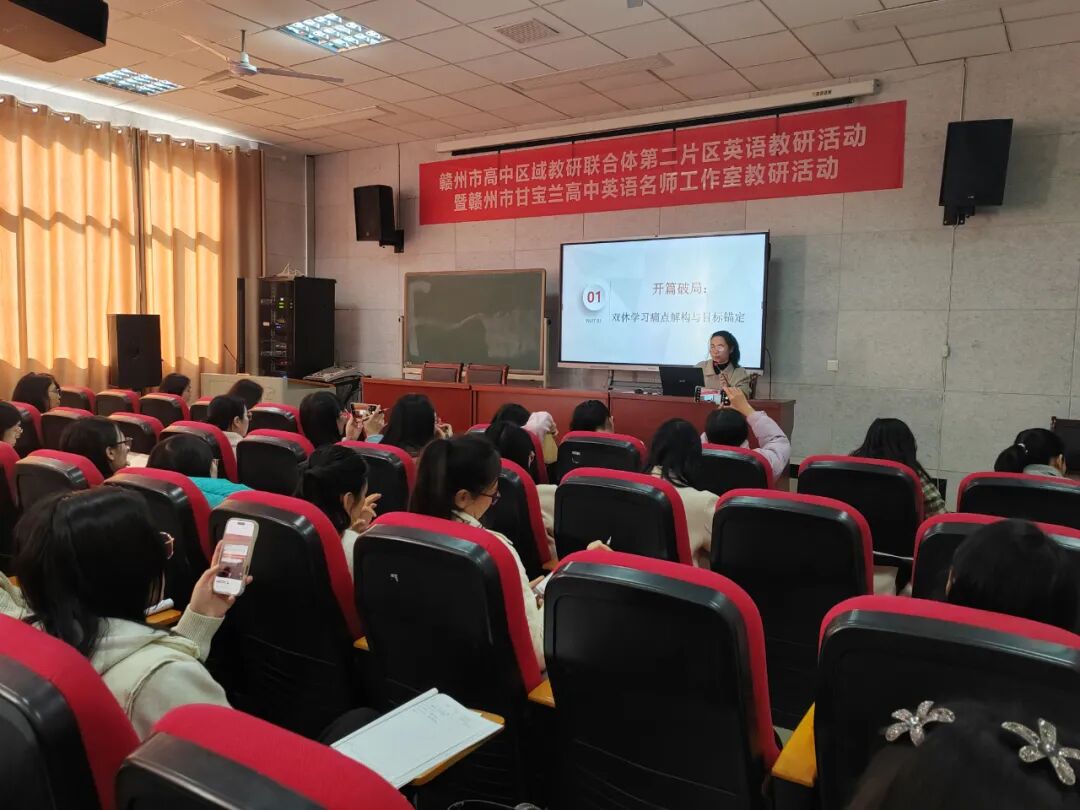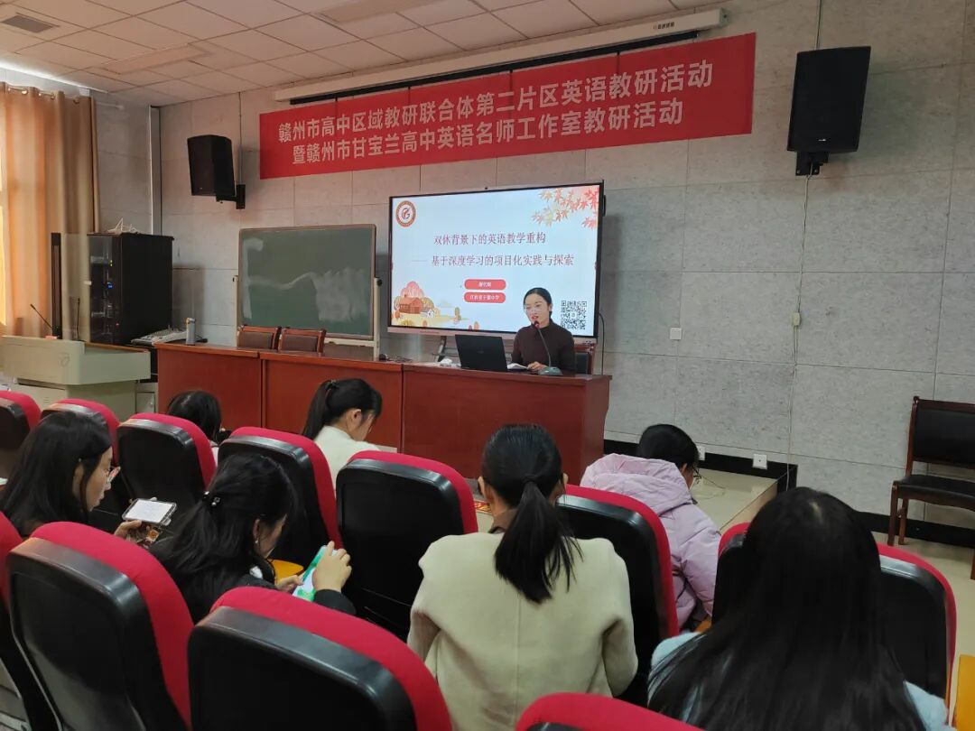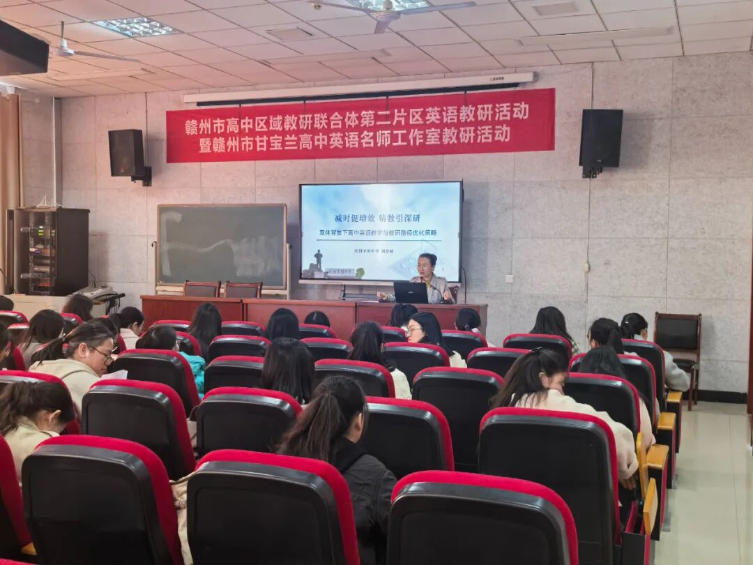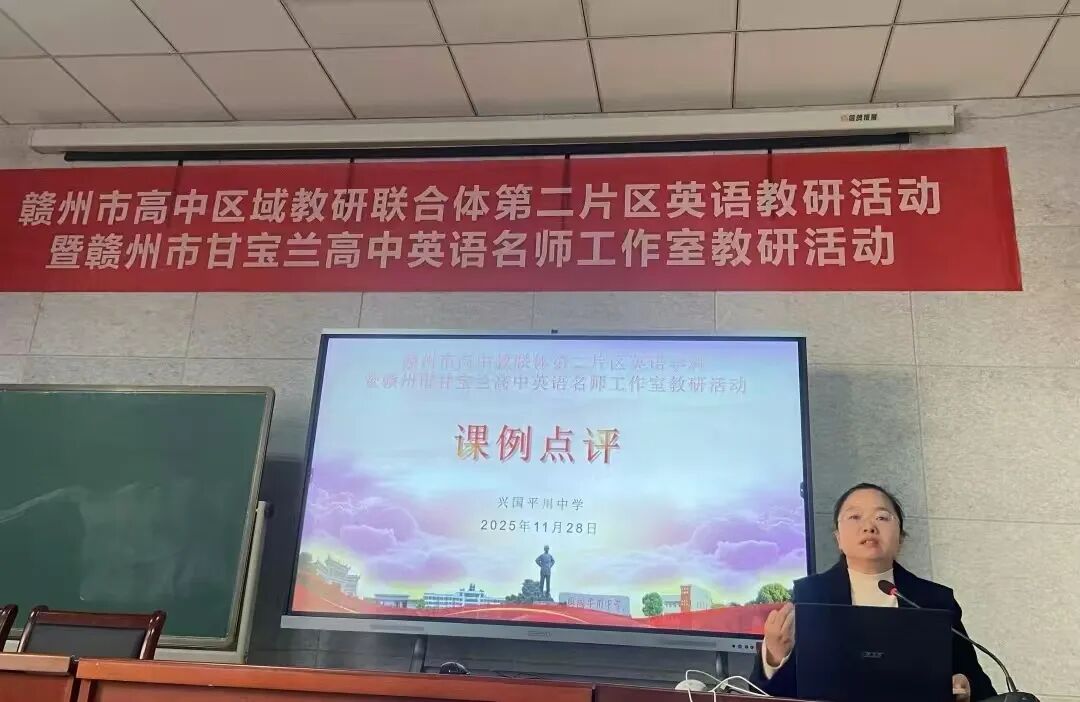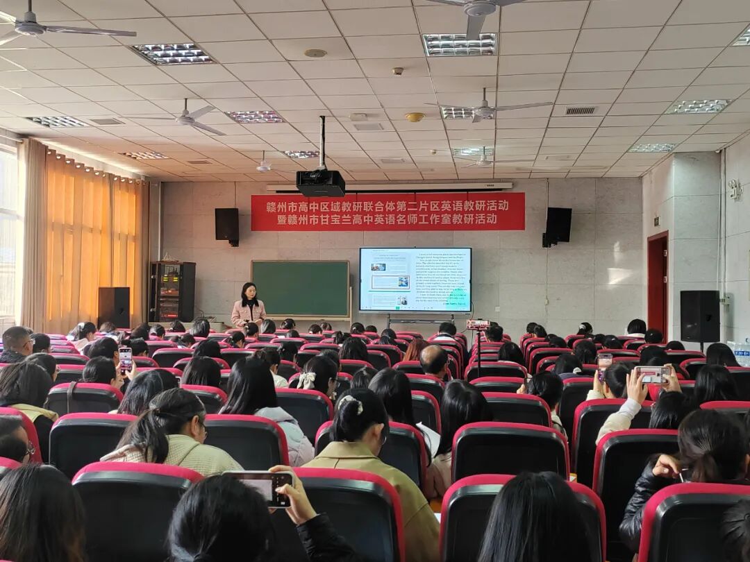 课例展示和经验分享后,赣州市高中英语工作室主持人甘宝兰老师对课例进行了点评,她肯定了教师们的课堂设计和教学创新,并从目标达成、学生参与、课后拓展等多个方面提出了改进建议。同时,甘老师还结合目前双休背景下高中英语教学遇到的一些困难和问题,提出了自己的独到见解,为在场老师提供了解决当前问题的宝贵建议。