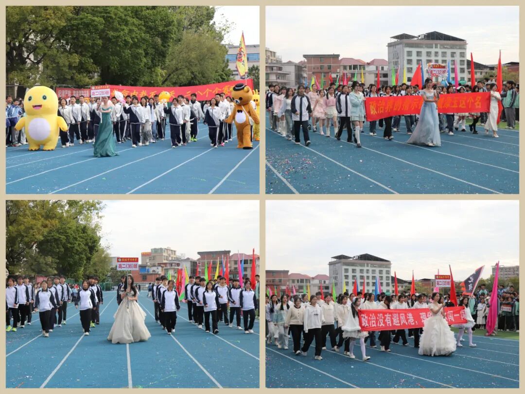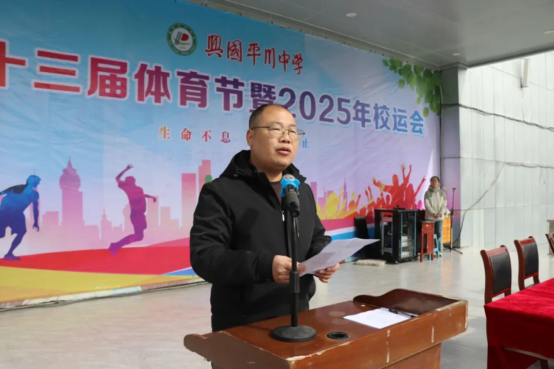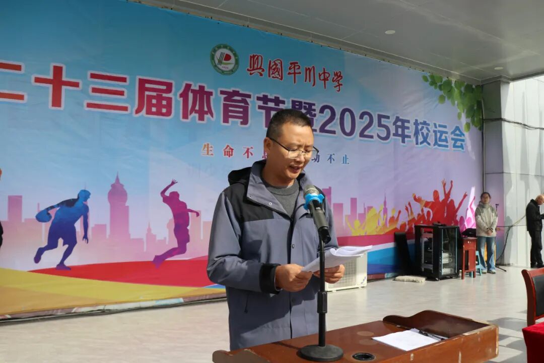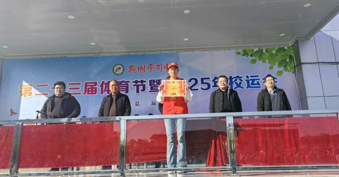 黄信璋副校长致闭幕辞,他对运动会的圆满成功表示热烈祝贺,对在比赛中取得优异成绩的班级和运动员表示衷心的祝贺,同时也对辛勤付出的裁判员、志愿者以及积极参与的师生们表示诚挚的感谢。他指出,运动会不仅是一场体育竞技的盛会,更是一次凝聚人心、展现风采的盛会,同学们在赛场上展现出的拼搏精神、团队精神和顽强意志,值得所有人学习。希望全体师生能将这份精神延续到今后的学习和生活中,勇于挑战、敢于拼搏,不断超越自我,共同书写兴国平川中学更加美好的明天。
