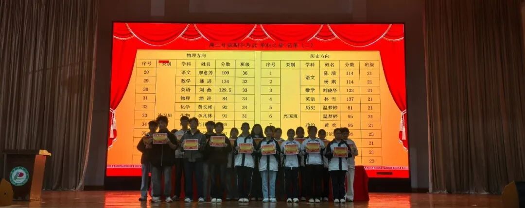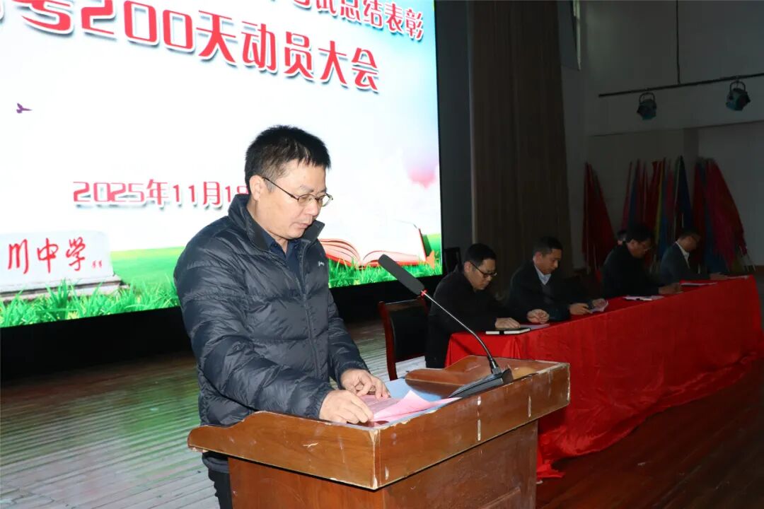 为进一步激发我校2026届高三师生冲刺高考、决胜高考的斗志,挖掘师生潜能,更加充分地调动复习备考的积极性,11月18日,高三年级举行了期中考试总结表彰暨高考200天动员大会。校党委委员谢宝珠,校党委委员、副校长王光祖,部分中层干部出席会议,高三年级全体师生参加了大会,会议由年级主任许鹏主持。