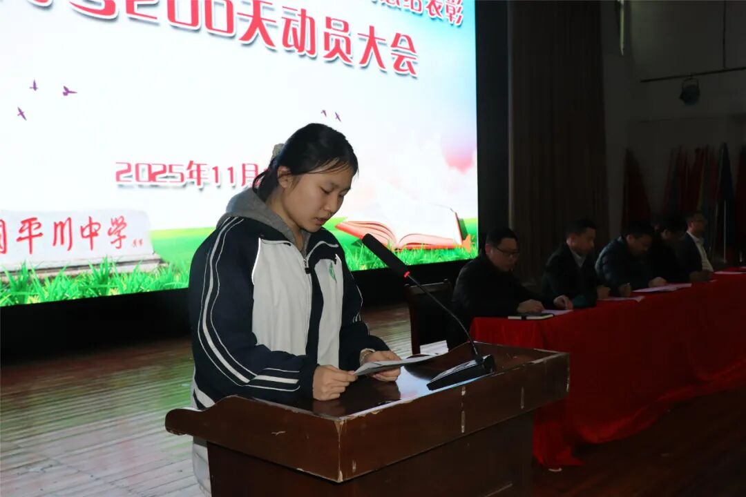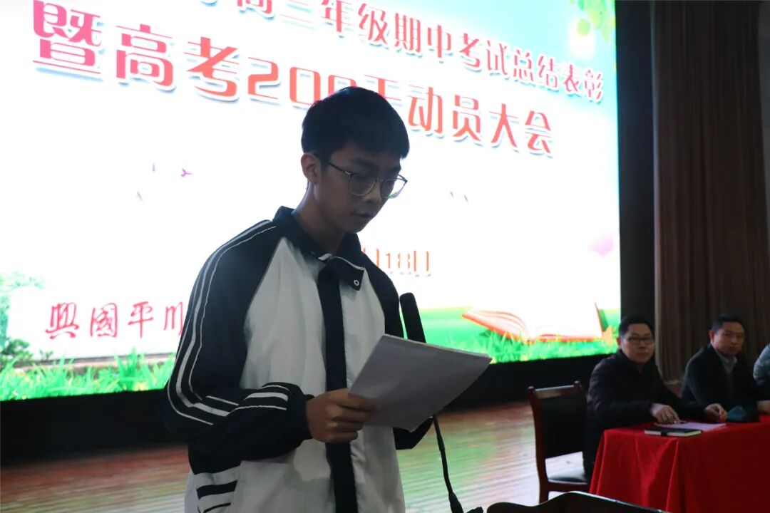 学生代表高三(11)班张慧权发言,他说,二百天可以很短,不过弹指一挥间;二百天也可以很长,成就梦想的大厦。在这二百天里,需给热爱留一番天地,让热爱成为对抗疲惫的铠甲。高三(23)班杨思彤重点分享了自己的学习经验,平和心态破困局,点滴积累筑根基,高效备考抢先机,200天冲刺,我们必赢!