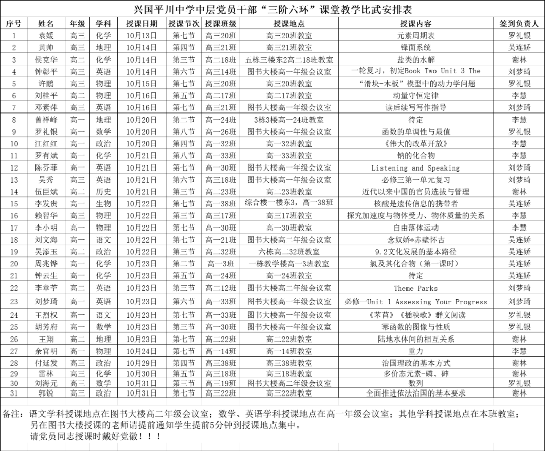 为深化课堂教学改革,发挥干部示范引领作用,以赛促教提升教师教学能力,让“三阶六环”高效课堂模式切实落地,10月13日至31日,我校开展了以“三阶六环”模式为主导的校级领导示范课与中层党员干部课堂教学比武活动。活动以“导学启智、共学深研、拓学赋能”三阶流程为框架,细化落实“问题驱动、思考探究、讨论释疑、展示评价、巩固检测、总结提升”六环步骤,为全校教育教学高质量发展注入活力。